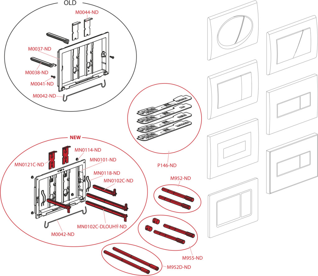 A nyomólap alkalmazásaFalsík alatti Alcaplast szerelési rendszerekhez és falba építhető WC tartályokhoz
