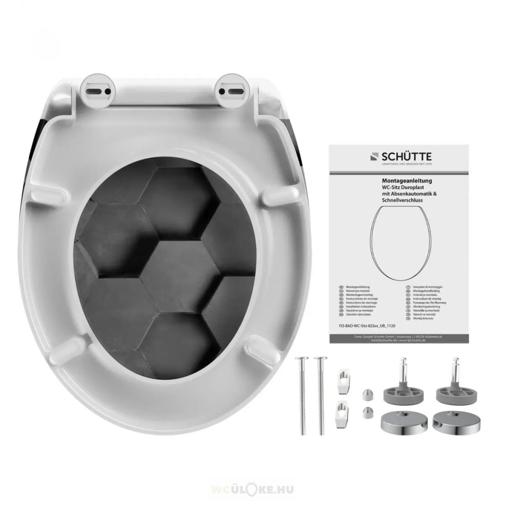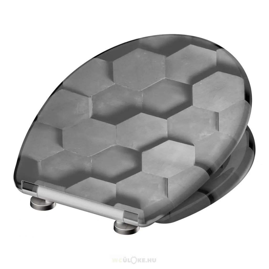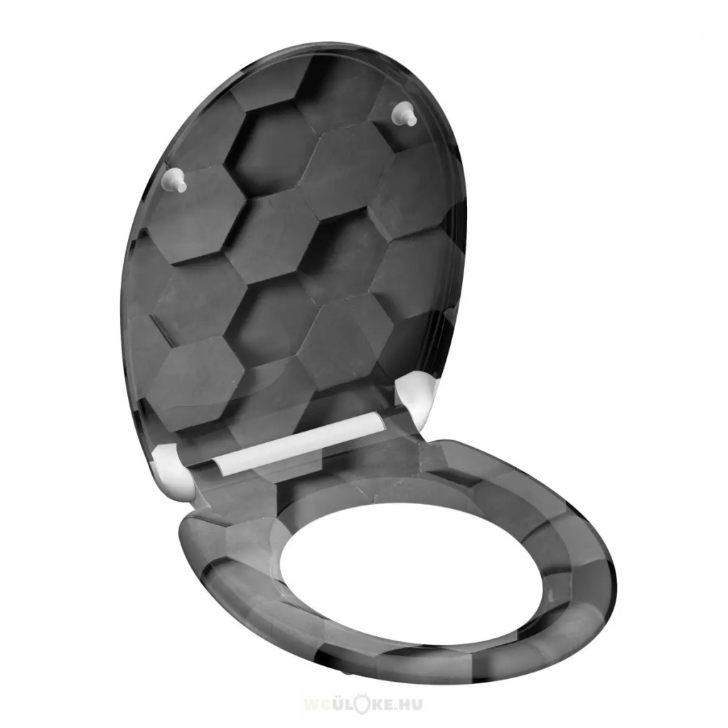 Duroplast WC-ülőke SZÜRKE HATSZÖGÖK lágy záródással és gyorszárással - 82392