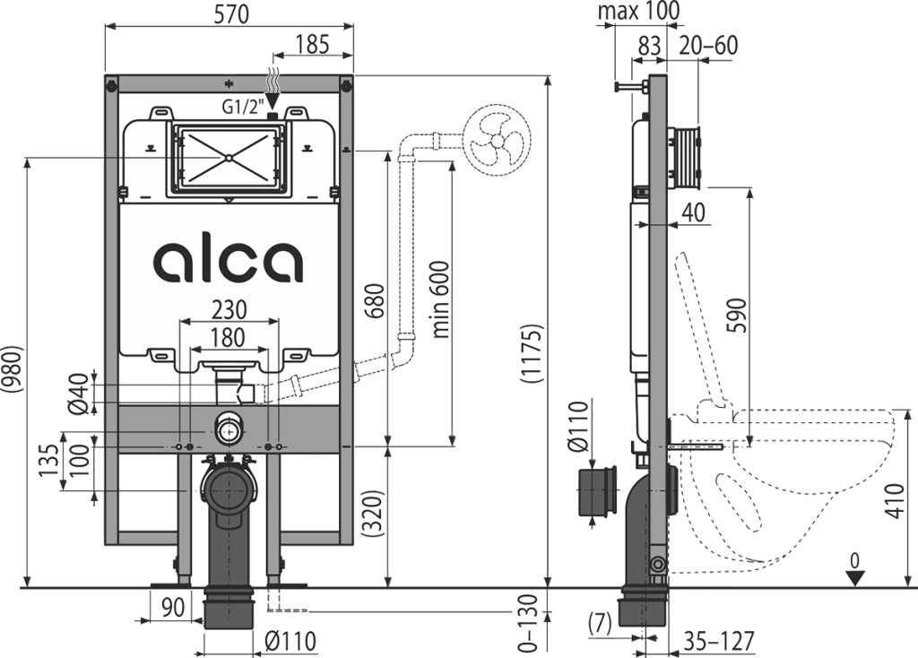 Függesztett WC szereléséhez 180 mm vagy 230 mm csatlakozással