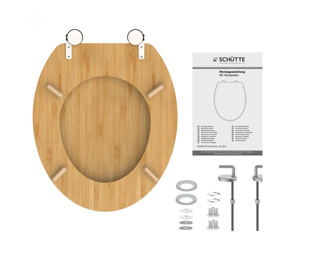 HOSSZÚ ÉLETTARTAM: A bambuszból készült fa WC-fedél rendkívül törhetetlen és robusztus. A szárak szárítása nagy stabilitású keményfát eredményez, amely tökéletes nedves helyiségekbe.