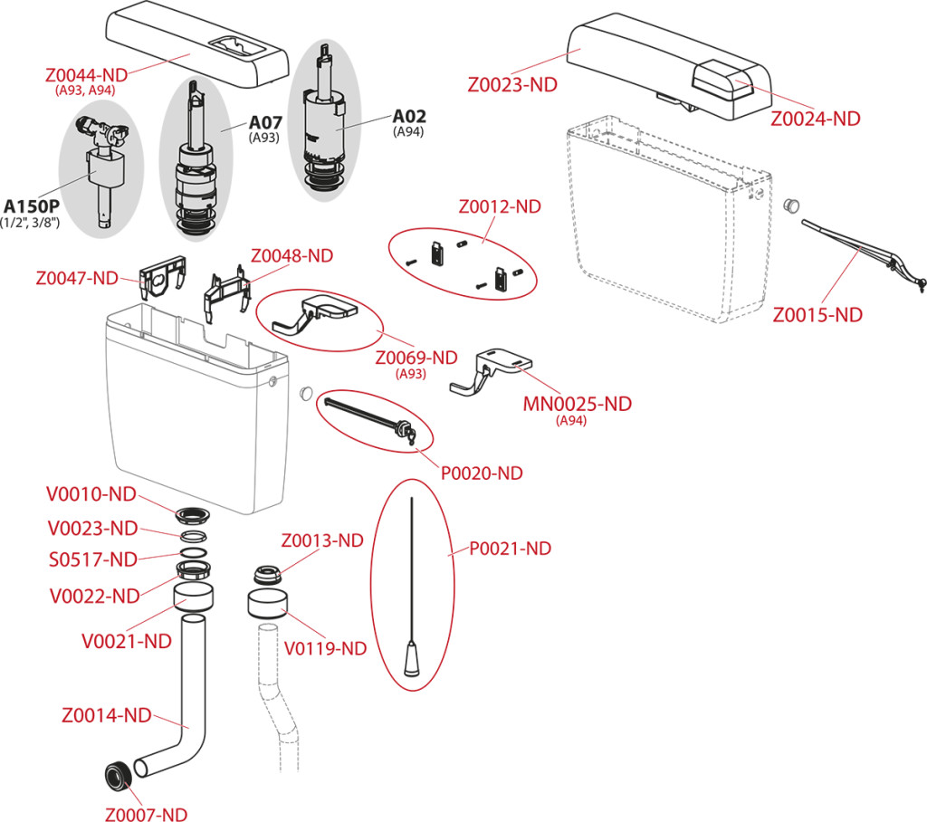 Öblítő készlet alacsonyan elhelyezett tartályhoz (nyomógomb)